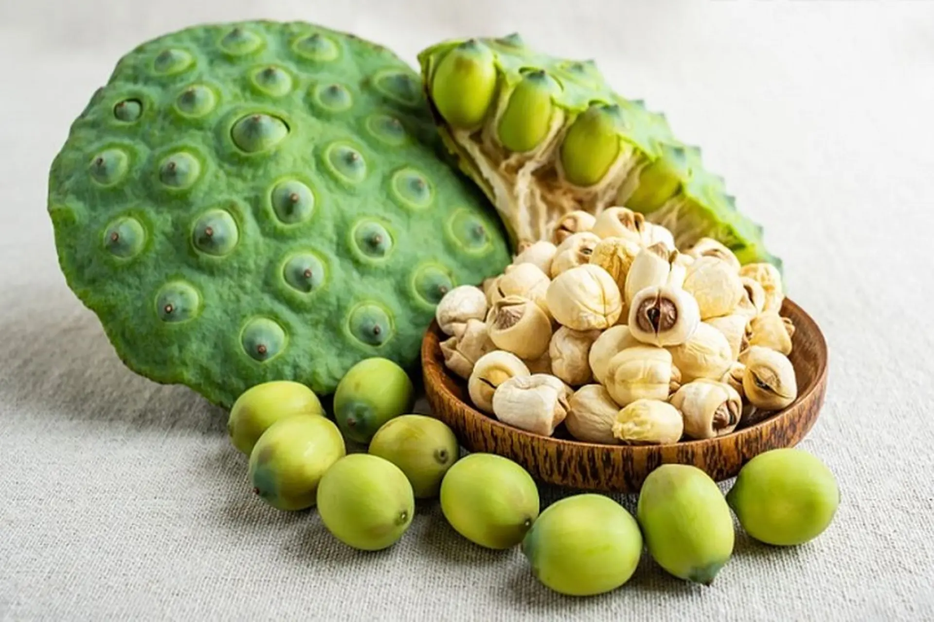 Hạt sen từ lâu đã được biết đến là loại thực phẩm – dược liệu quý, thường được dùng trong các món chè, mứt, súp hoặc ăn sống. Hạt sen có vị ngọt, sáp, tính bình, giúp bổ thận, kiện tỳ, hỗ trợ tiêu hóa, cải thiện chứng chán ăn và chữa tiêu chảy. Thành phần dinh dưỡng trong hạt sen rất dồi dào, đặc biệt là protein, magie, kali, phốt pho và chất xơ, trong khi lại ít natri, cholesterol và chất béo bão hòa. Nhờ đó, hạt sen là lựa chọn lý tưởng cho người ăn chay hoặc người muốn bổ sung dưỡng chất mà không lo tăng cân.